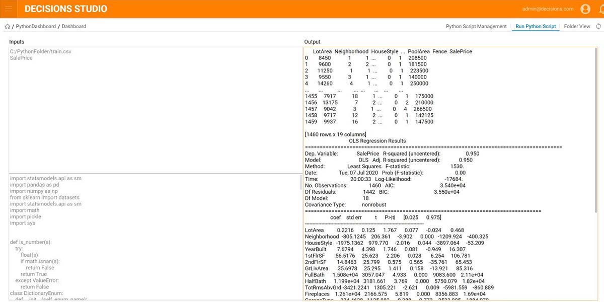 To learn more about integrating R & Python into your Decisions application I would highly recommend checking out our webinar recording. In this webinar we create a machine learning model of housing prices based on a lot of data and include this information as part of a Decisions process. Watch the entire recording.